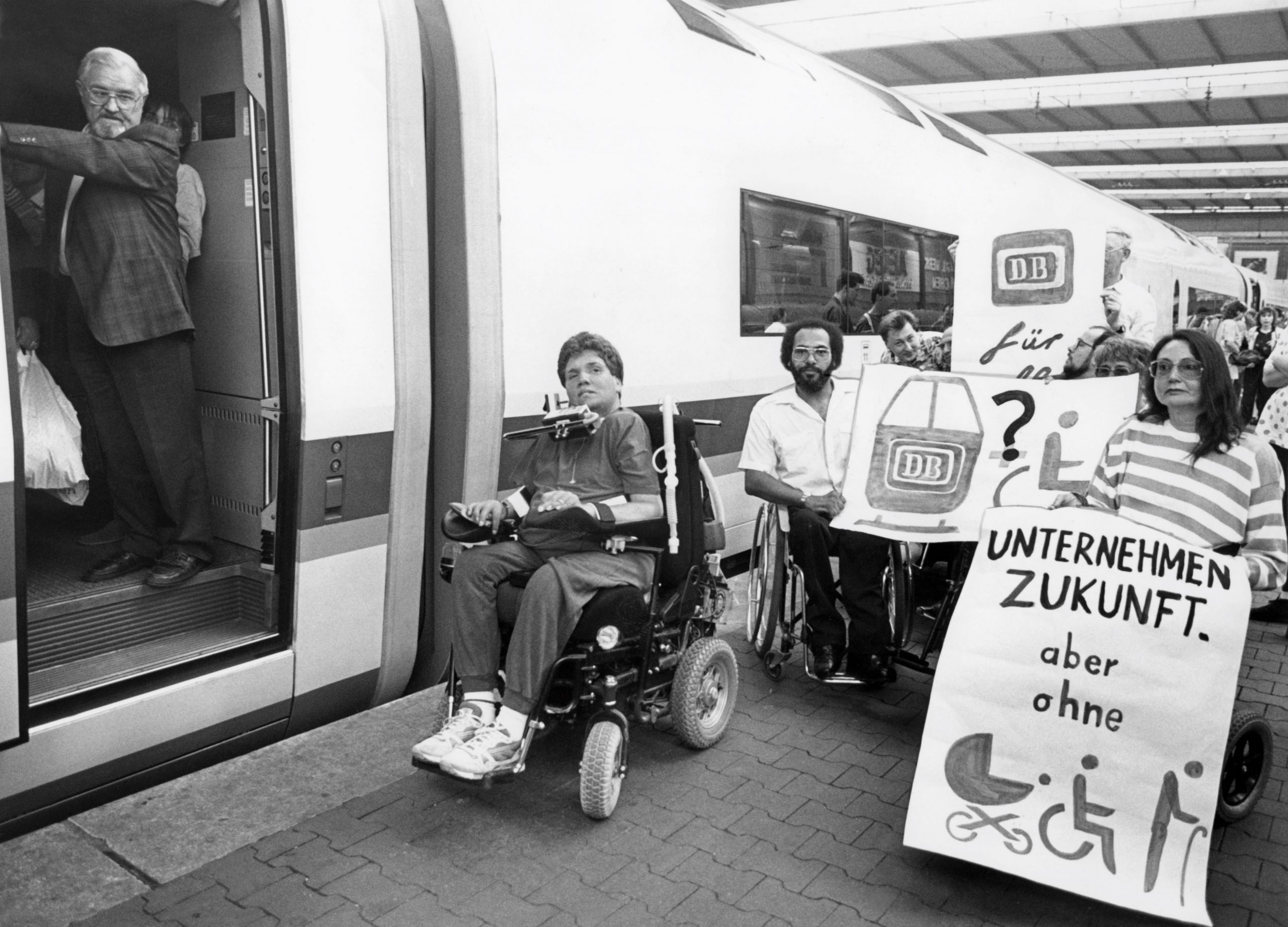 15:02, 14. Dez. 2023Vorschaubild der Version vom 15:02, 14. Dez. 2023680 × 489 (71 KB)Badekow (Diskussion | Beiträge)Rollstuhlfahrende demonstrieren auf einem Bahnsteig am Hauptbahnhof München für barrierefreie Zugänge zu den Zügen der Deutschen Bahn, 1995, Copyright: Karl-Heinz Egginger/Süddeutsche Zeitung Photo.